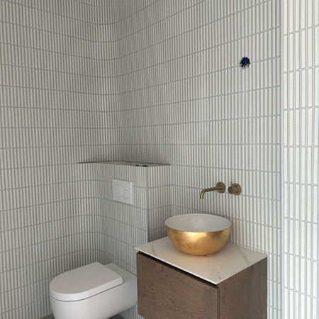 Entree, royale hal met vide. Directe toegang tot de garderobe, wasruimte en het toilet op de begane grond. Vanuit de entree kom je in de living met een luxe open keuken. De schuifpuien leiden naar de tuin. Aan de achterzijde bevindt zich de technische ruimte met een warmtepomp, WTW en domotica systeem. Via de vaste trap in de living bereik je de verdieping met overloop en 3 ruime slaapkamers. De eerste badkamer is voorzien van een inloopdouche, vrijstaand bad en een badkamermeubel met dubbele wastafel. Het toilet is apart op de gang. Vanuit de overloop is er toegang tot de kamer met trapopgang naar de tweede verdieping, waar de master bedroom met en-suite badkamer zich bevindt.